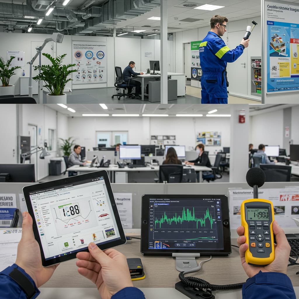En Safe Group, llevamos la precisión al siguiente nivel en la evaluación de tus ambientes de trabajo. Nuestras Mediciones Higiénicas Ocupacionales, incluyendo luxometrías para asegurar una iluminación adecuada y sonometrías para controlar los niveles de ruido, se realizan con equipos calibrados y bajo estrictas normativas nacionales e internacionales.